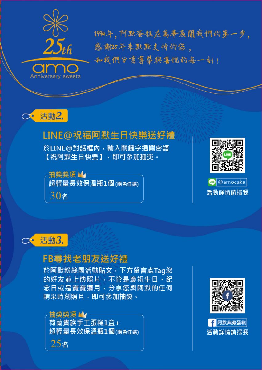 近日詐騙集團猖獗,如假借阿默蛋糕名義要求您做任何金錢上的交易,請立即撥打客服專線(02)8076-3168詢問,並向165反詐騙專線提報。謝謝!