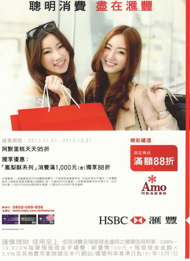 (2)匯豐獨家伴手禮優惠: 凡卡友購買阿默鳳梨酥系列,單筆消費滿1000元以上,享獨家88折優惠。