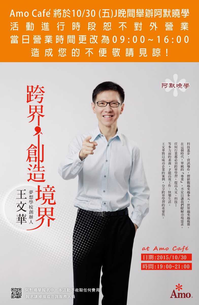 【10月阿默曉學】王文華先生在Amo Cafe與您一起分享 - 跨界,創造境界-